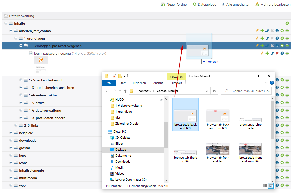 Eine übersichtliche Struktur innerhalb der Dateiverwaltung erspart Ihnen auf lange Sicht viel Sucherei, wenn Sie später Inhalte bearbeiten. Oft werden massenhaft Bilder mit langen, unübersichtlichen Dateinamen in einem einzigen Ordner abgelegt – bei der Bearbeitung der Inhalte müssen Sie dann lange scrollen, bis Sie das richtige Bild gefunden haben (war es nun PXL-001587692-323.jpg oder PXL-001587692-324.jpg??)