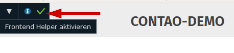 - Klicken Sie auf das grüne Hakerl. Damit aktivieren Sie den Frontend-Helper: